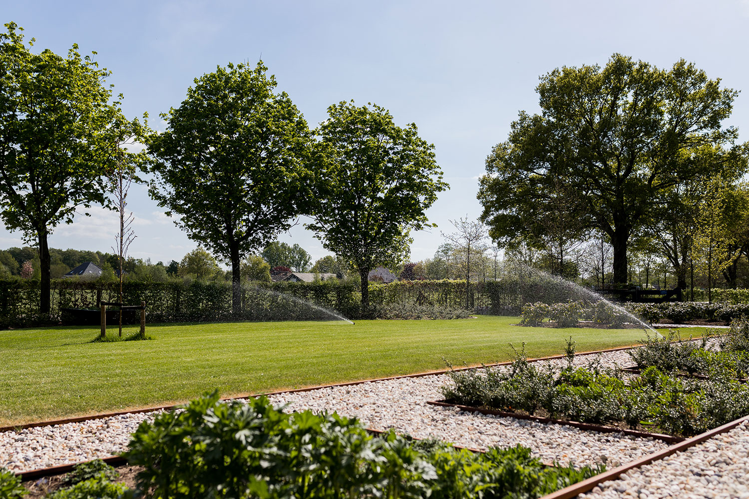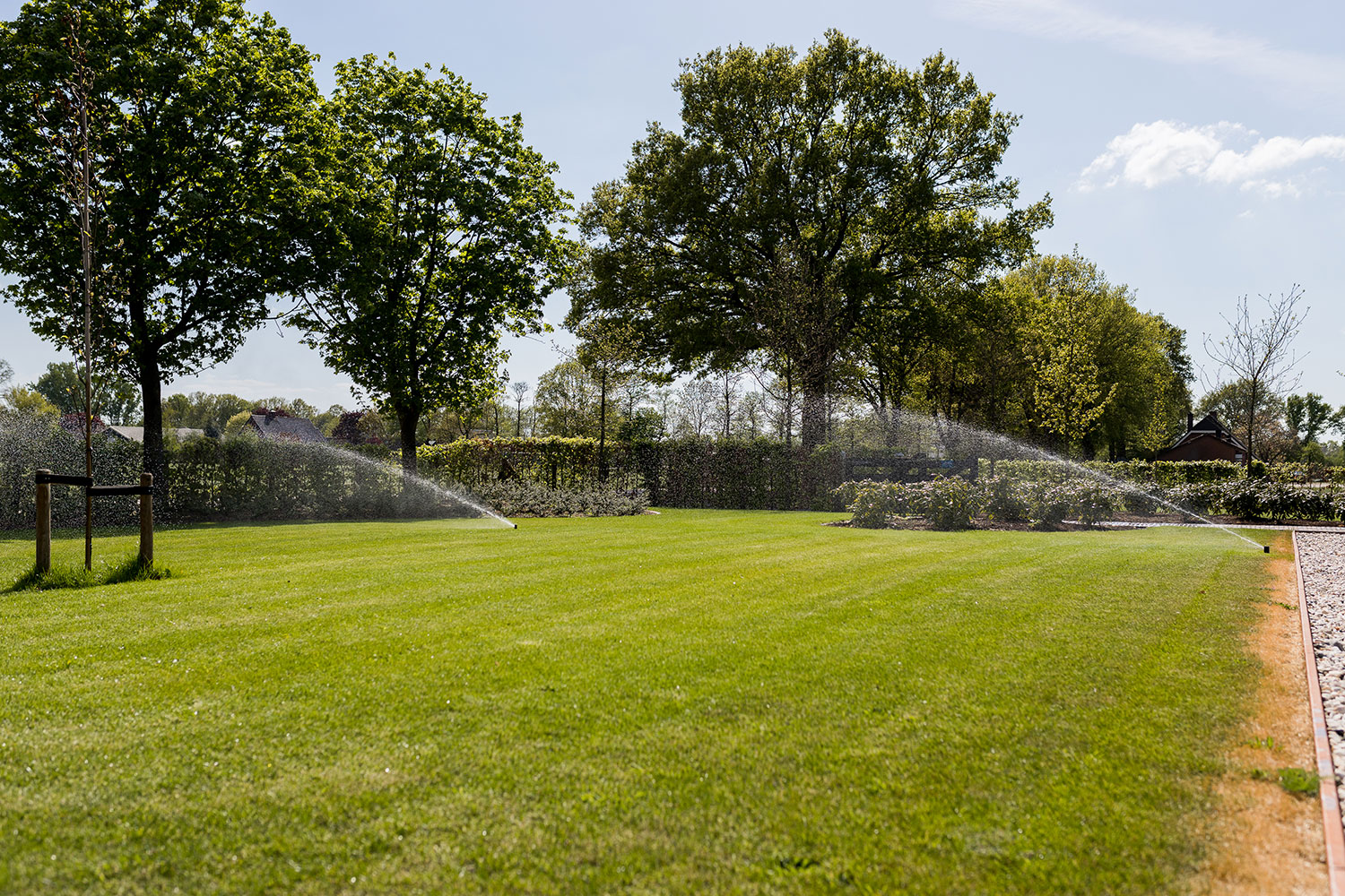 Beregening draagt bij aan een optimale conditie van bijvoorbeeld tuinen, sportvelden en maneges.