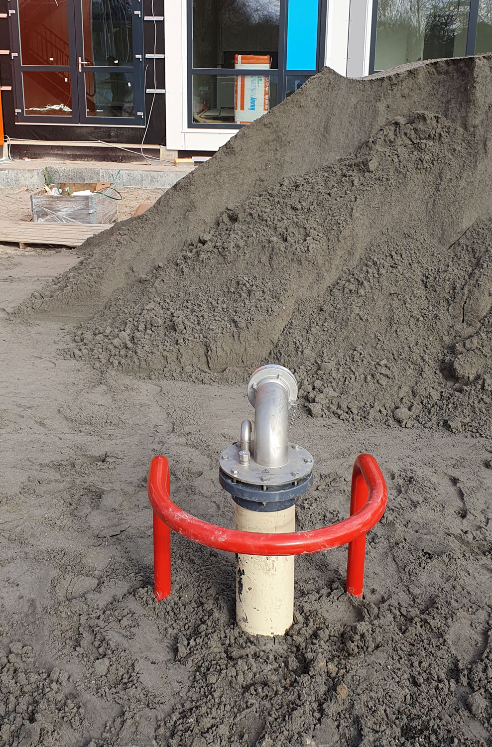 We gebruiken spoelbakken om het boorsediment op te vangen, zodat de boorlocatie relatief schoon blijft. De aarde storten we nabij de boorplaats, maar desgewenst kunnen we tegen meerprijs deze grond ook voor u afvoeren.