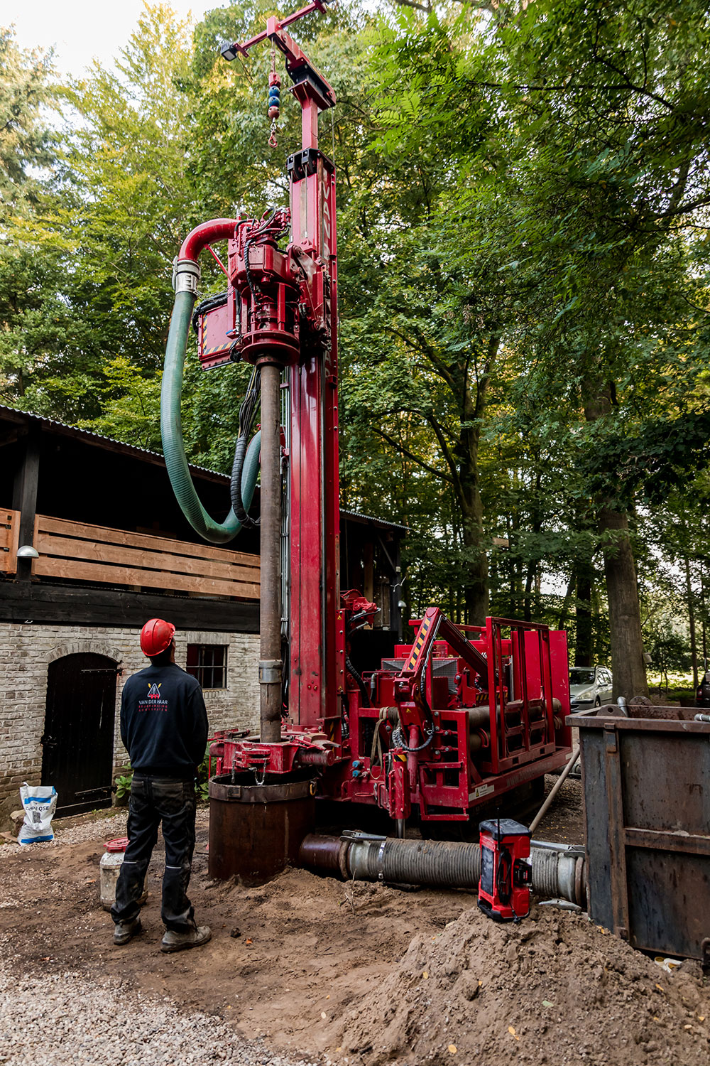 Met deze boorkraan (zuigboorinstallatie) kunnen tot 100 meter diep boren. Hierbij kunnen we op elke diepte duidelijk bepalen met welke grondlaag we te maken hebben. Op basis van ervaring uit eerdere boorwerken in de omgeving en de gegevens die we verkrijgen via de Nederlandse databank kunnen wij u een specifieke schatting geven van de noodzakelijke diepte van de bron. De bodemopbouw die we tijdens de boring nauwkeuring bekijken, bepaalt uiteindelijk de definitieve diepte van de bron.